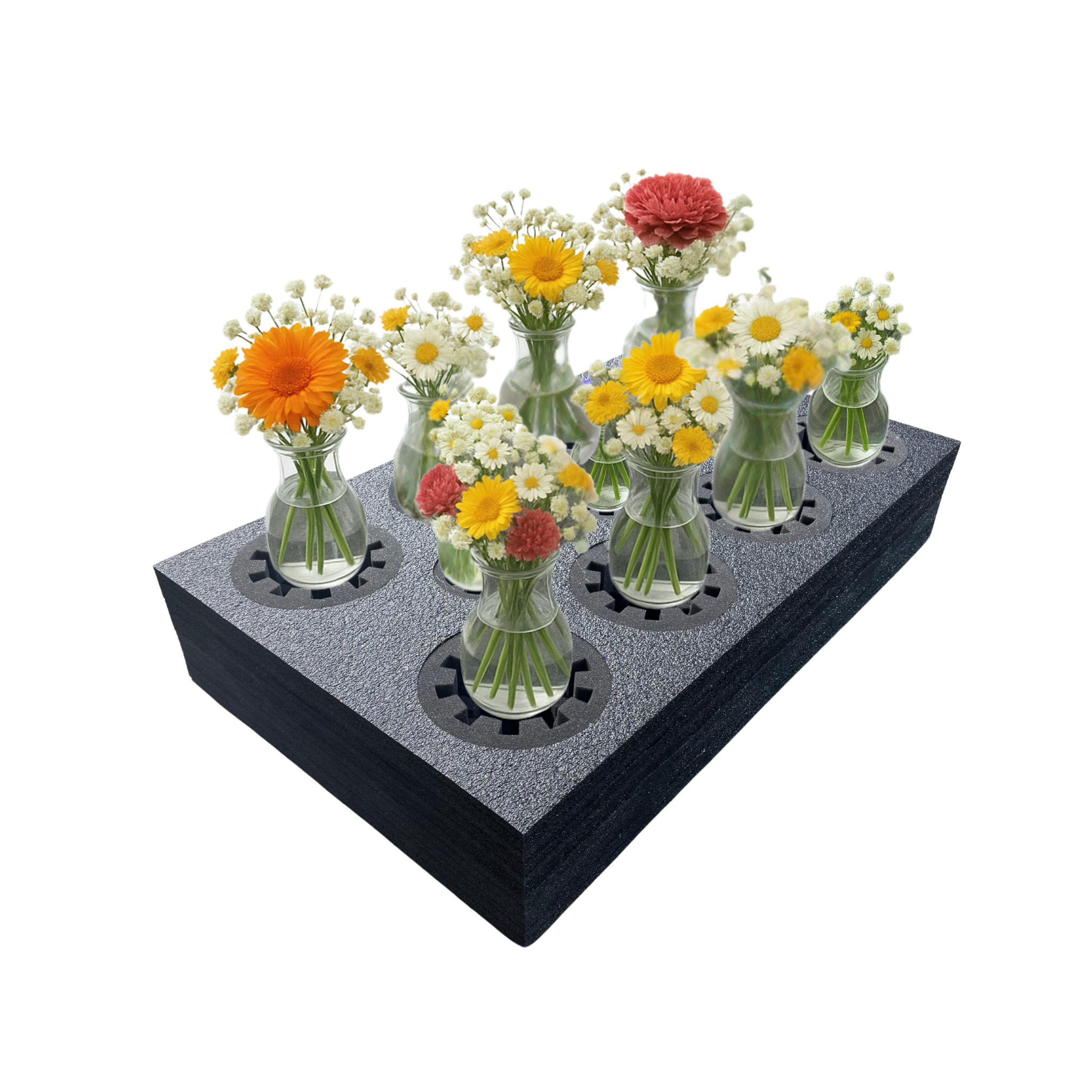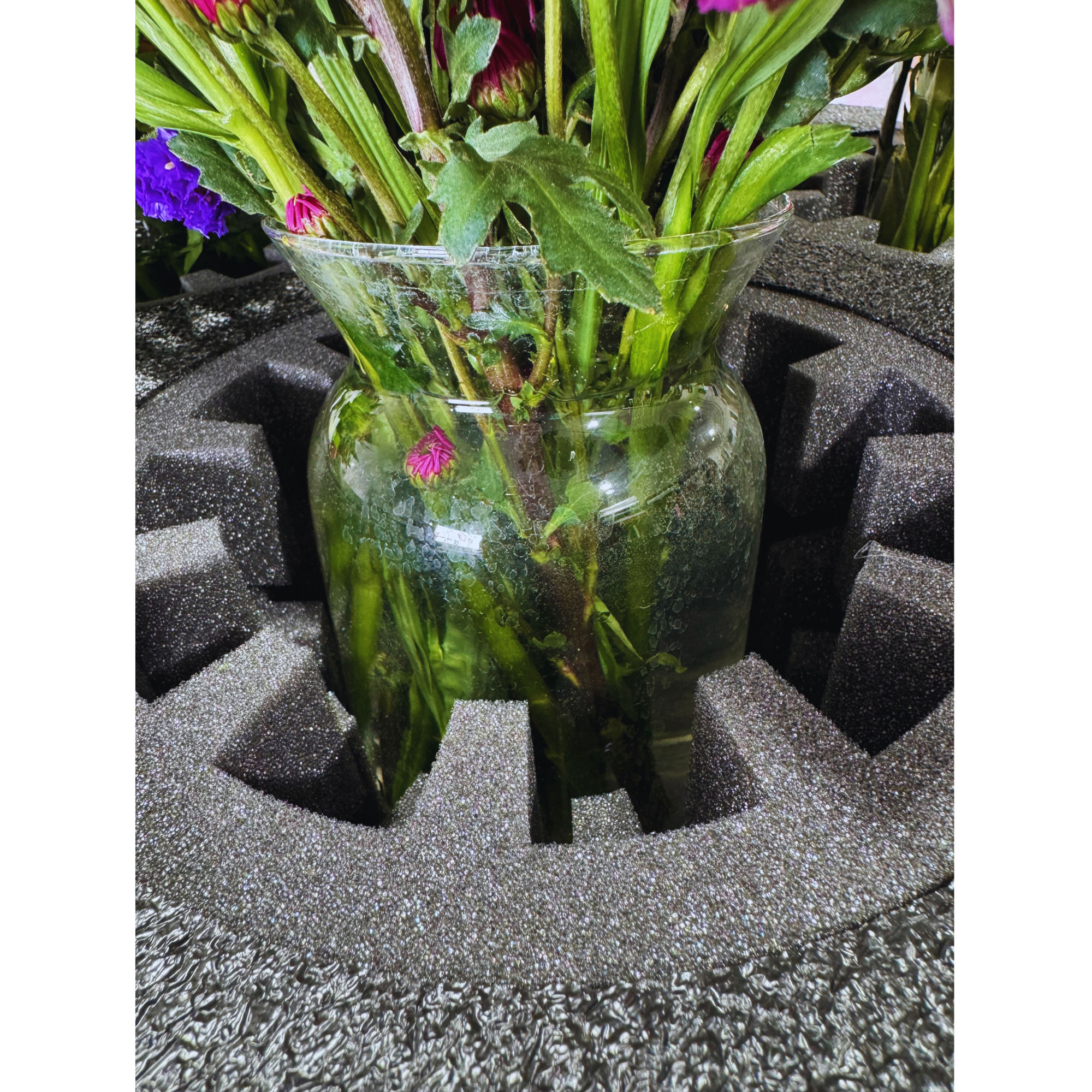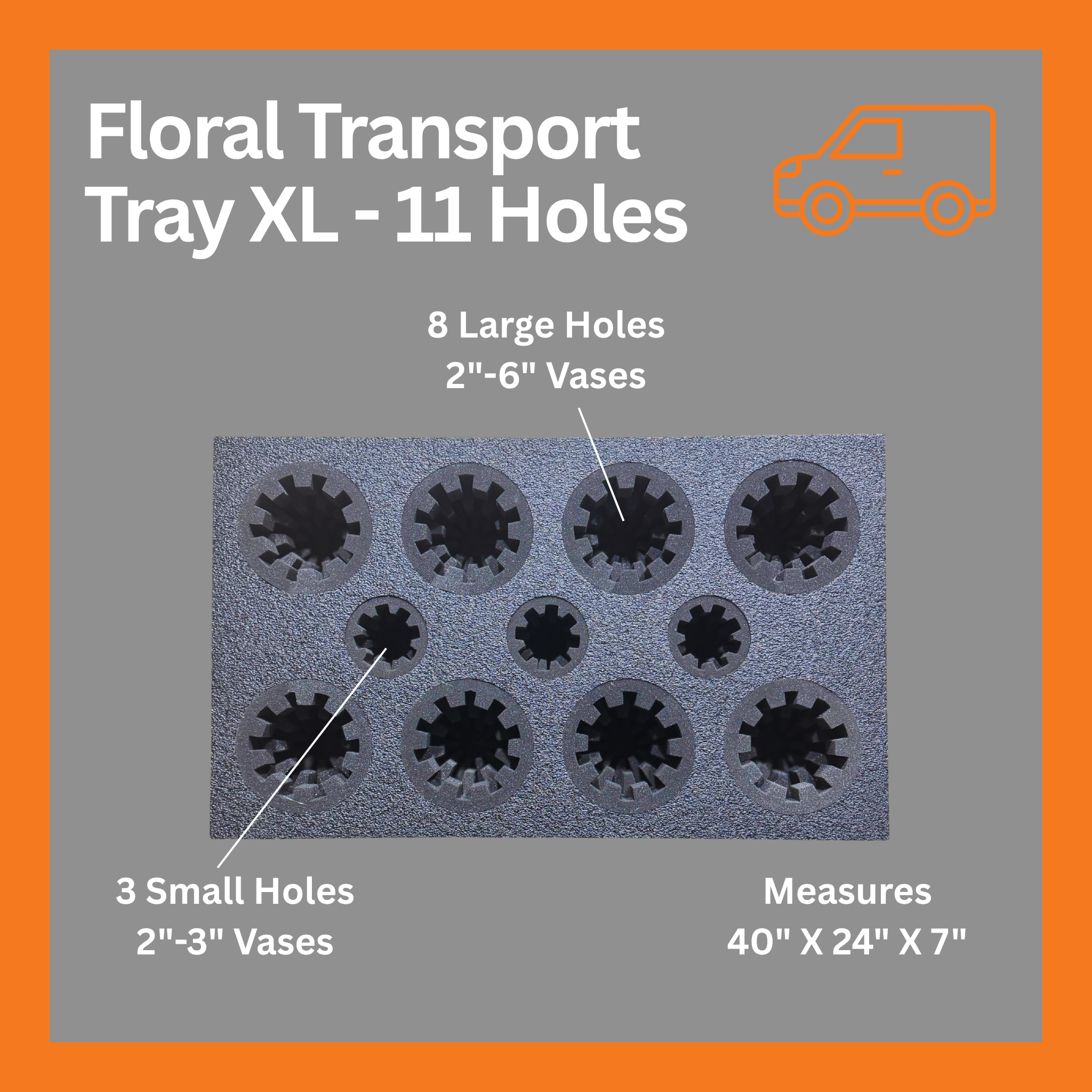 Transform your floral delivery experience with EPE's innovative floral arrangement handling tray. This versatile transport solution accommodates vases from 2" to 6" in diameter through its universal 11-hole design, ensuring your beautiful arrangements arrive in pristine condition. Crafted in the USA from recycled materials, this durable 40" x 24" x 7" tray is both reusable and washable, making it a practical choice for repeated use. The lightweight yet sturdy construction allows for easy carrying of multiple arrangements simultaneously, while the thoughtful design enables secure transport in any vehicle - you can even use the seatbelt for added stability. Whether you're a professional florist or handling personal deliveries, this black handling tray provides the reliable protection needed to maintain your arrangements' beauty from shop to destination. The 30-day warranty backs the quality of this essential floral transport solution.